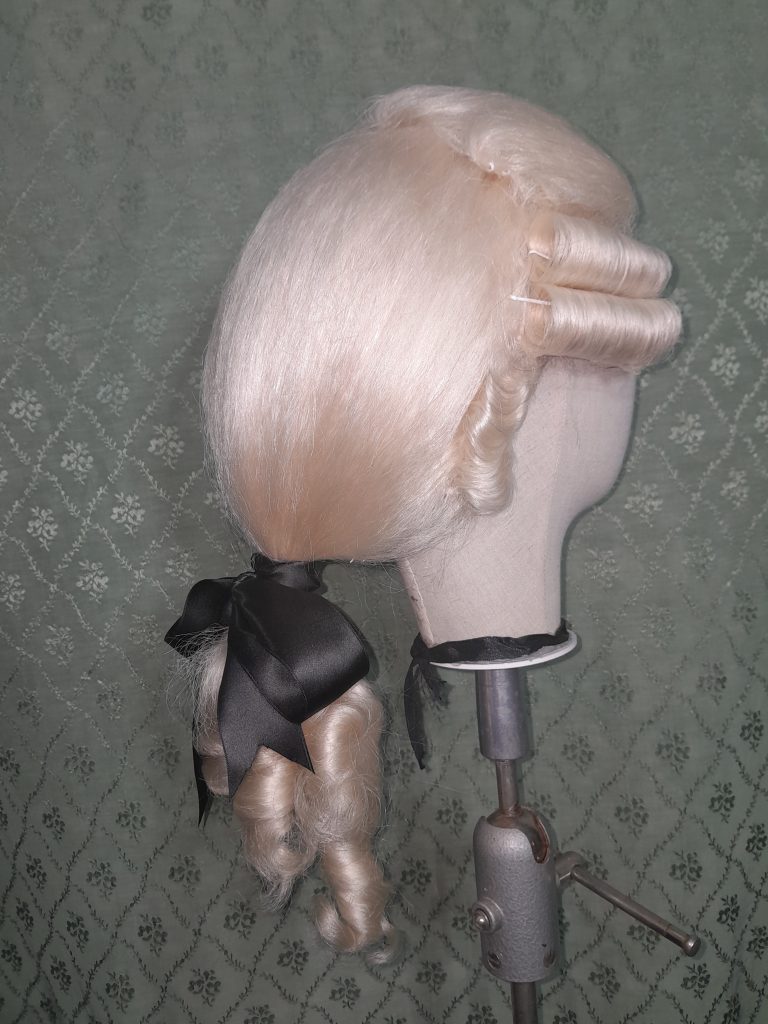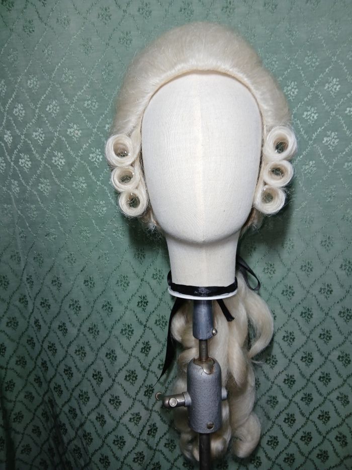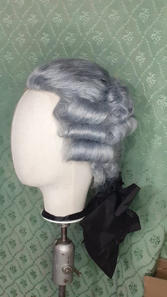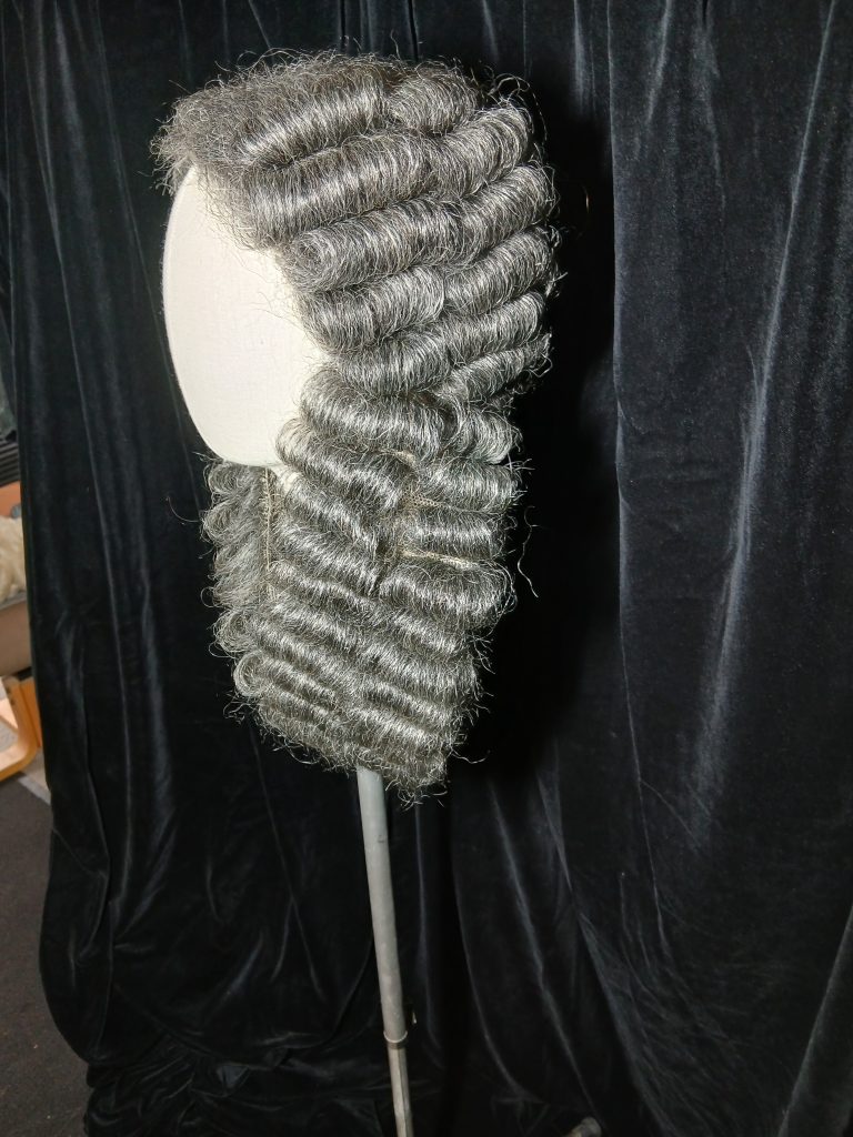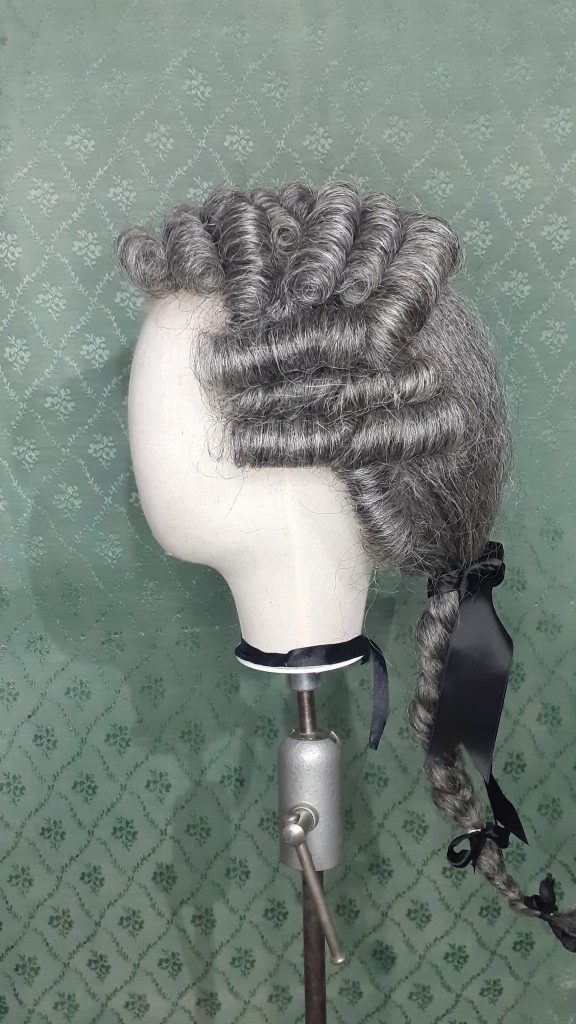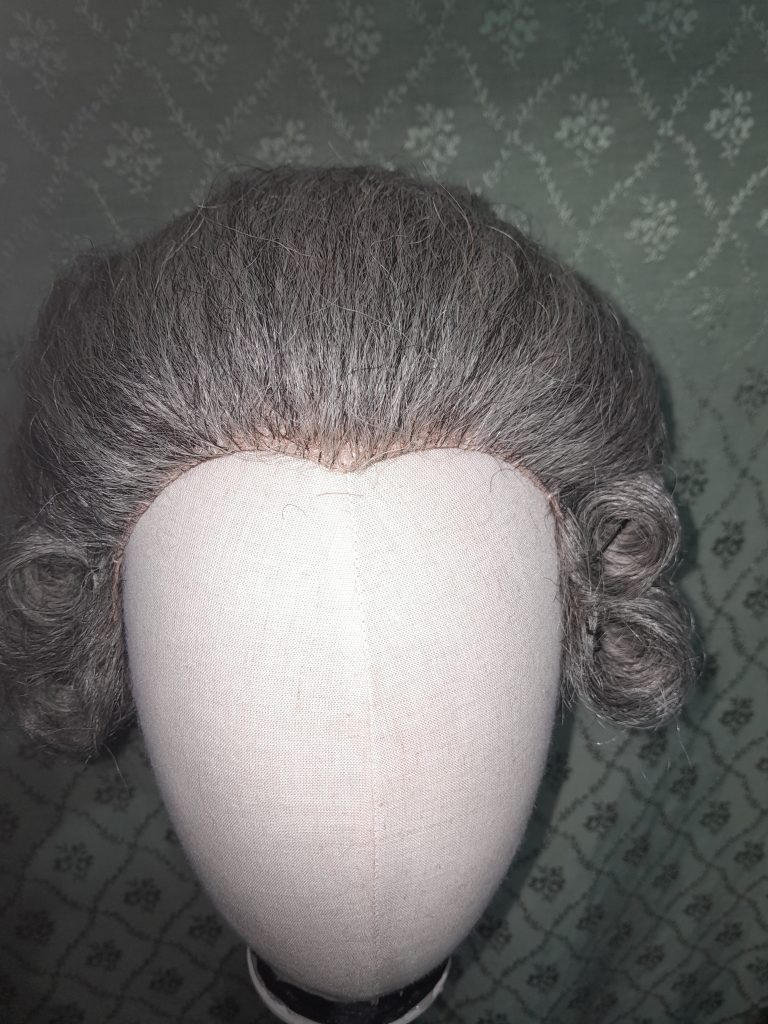 Eine Herren Rokokoperücke in graumeliert nach französischem Vorbild 1760er: